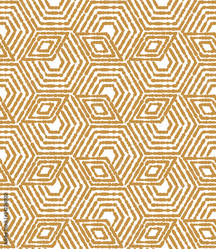 Abstract geometric pattern with stripes, lines. Seamless vector background. White and gold ornament. Simple lattice graphic design