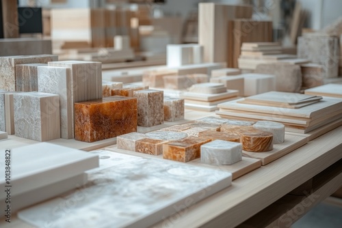 Abstract Geometric Patterns with Natural Stone and Wood Textures