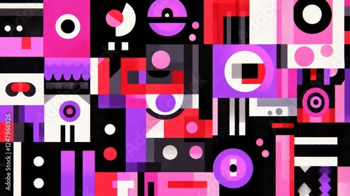 Abstract Geometric Pixel Art Design Bold Purple Pink Red Black Mosaic Pattern