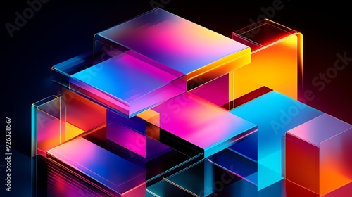 Abstract Geometric Shapes - Neon Colors and Glass Reflection