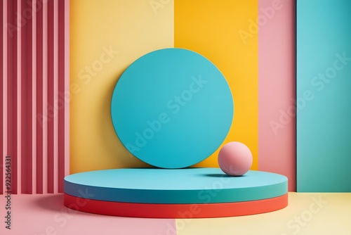 Abstract Geometric Shapes 3D Rendering Pastel Colors