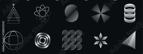 Abstract Geometric Shapes Set Black and White Vector Collection
