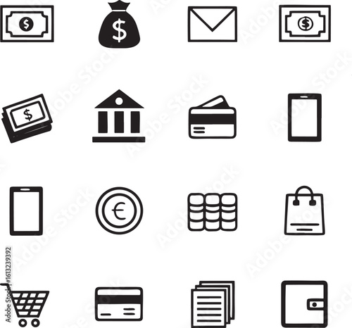 Abstract geometric shapes with bold outlines and vibrant color accents silhouette style