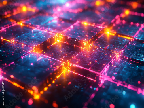 Abstract geometric square with glowing edges and luminous dots, modern design with network of connections