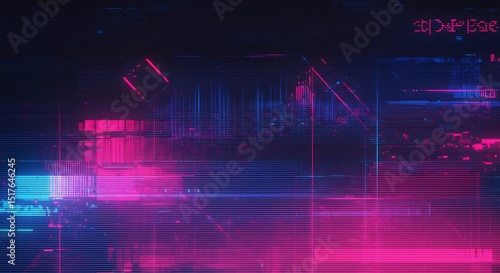 Abstract Glitch Art Background Pink Blue Neon Lines