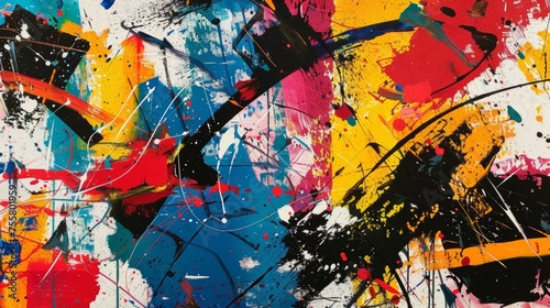 Abstract Glitched Art with Streaks of Neon Colors and Textured Overlays