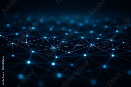Abstract glowing blue network of interconnected nodes and lines on a dark background