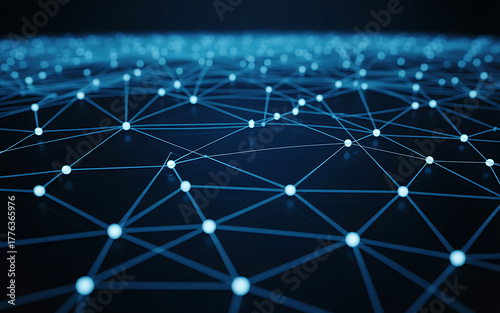 Abstract glowing blue network of interconnected nodes and lines on a dark background