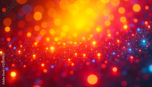 Abstract glowing bokeh with red yellow orange and blue light for background