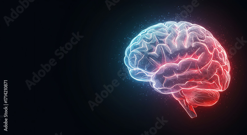 Abstract Glowing Brain: Neurology, Neuroscience, Medical Concept, Dark Background, Digital Art.