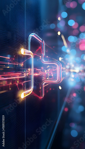 Abstract glowing cross data transfer, digital network background, technology concept, website banner