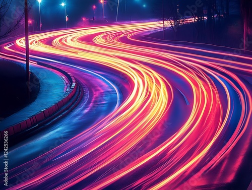 Abstract Glowing Light Trails with Vibrant Colors Creating a Futuristic Energy Wave Effect in a Dynamic Digital Motion Background for Modern and Tech Themes