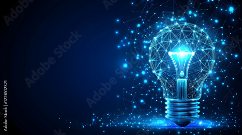 Abstract glowing lightbulb graphic, innovative technology concept, digital networking, connection, bright idea, futuristic design.