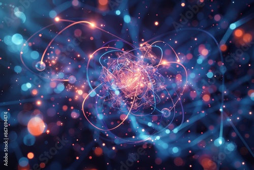 Abstract Glowing Orb with Intricate Network of Light Trails in a Cosmic Background