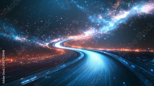 Abstract glowing road in space. Infinite - Universe. Illustration