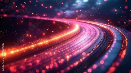 Abstract Glowing Stream of Light Trails Through Dark Space Technology