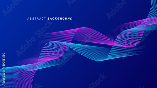 Abstract glowing wave lines on dark blue background. Dynamic wave pattern. Modern flowing wavy lines. Futuristic technology concept. Suit for banner, poster, cover, brochure, flyer, website