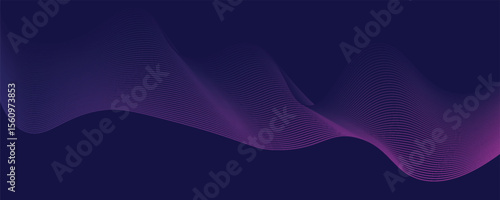 Abstract glowing wave lines on dark blue background. Modern flowing wavy lines