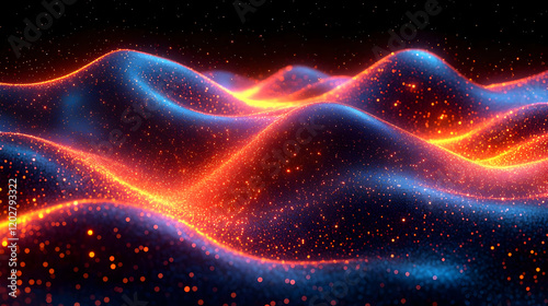 Abstract Glowing Waves of Red and Blue Particles in Dark Space