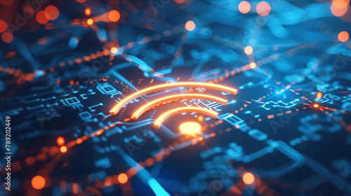 Abstract glowing Wi-Fi symbol on blue background, Connectivity, internet, network