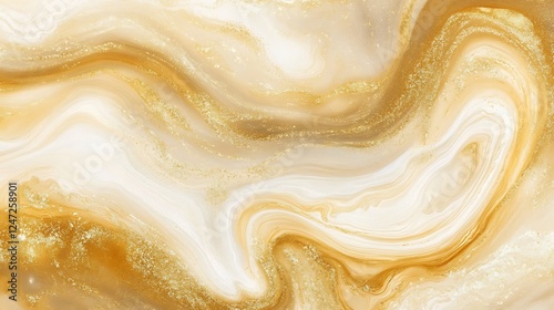 Abstract Gold And White Swirling Marble Texture