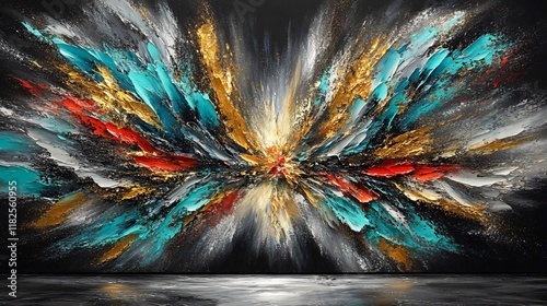 Abstract Gold Teal Red Burst Painting Modern Canvas Art