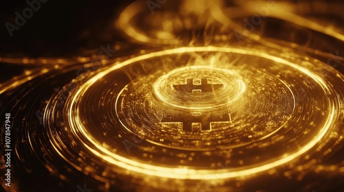 Abstract Golden Bitcoin Concept with Dynamic Circles