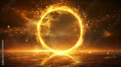 Abstract golden circle effect with a radiant glow and a sophisticated, luxurious atmosphere