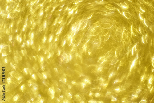 Abstract golden swirls with light reflections creating mesmerizing circular patterns.
