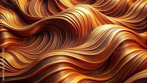 Abstract Golden Wavy Lines of Liquid Gold Intertwined in a Dance of Light and Shadow
