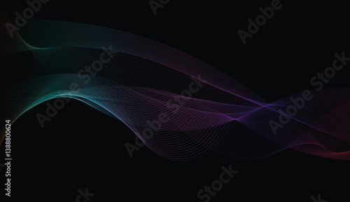 Abstract gradient particles background colorful line on waves. illustration vector design on black background.