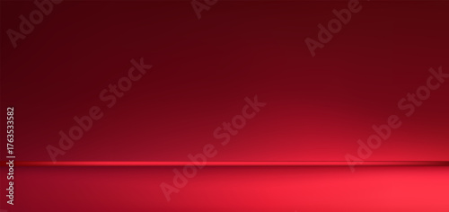 Abstract gradient podium background. Red empty 3d studio backdrop. Clean scene for product presentation. Christmas or New Year mockup template. Vector illustration.
