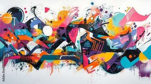 Abstract graffiti art mural on a clean white background, bright and energetic colors