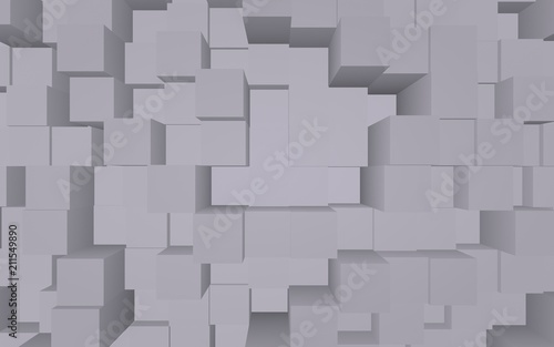 Abstract gray elegant cube geometric background. Chaotically advanced rectangular bars. 3D Rendering, 3D illustration