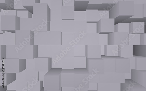Abstract gray elegant cube geometric background. Chaotically advanced rectangular bars. 3D Rendering, 3D illustration