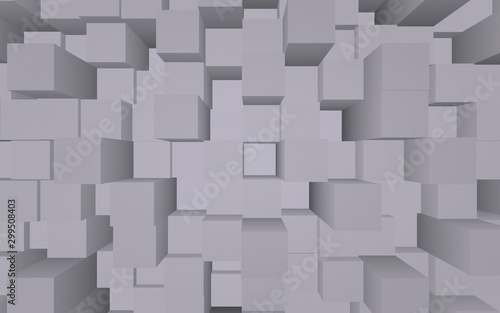 Abstract gray elegant cube geometric background. Chaotically advanced rectangular bars. 3D Rendering, 3D illustration