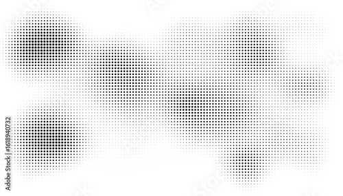 Abstract Grayscale Halftone Dot Clusters with Soft Blurry Edges on White Background for Modern Designs