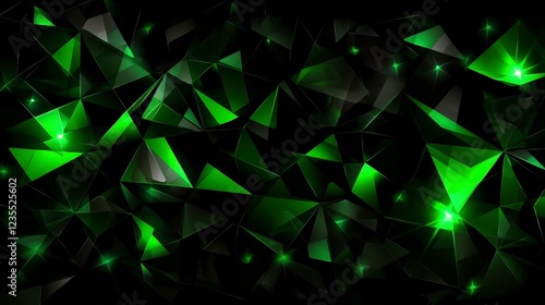 Abstract Green Geometry with Glowing Accents on Dark Background