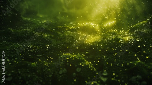 Abstract Green Landscape With Golden Bokeh, Fantasy World Backdrop