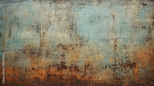 Abstract green rusty rust wallpaper texture wall illustration background with many worn aged weathered grunge layers, Generative AI