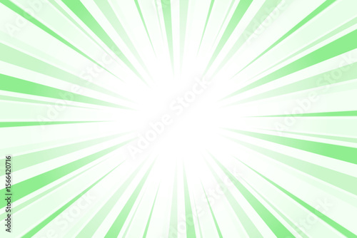Abstract green sunburst background. Sun rays backdrop. Radial green background with sun rays. Summer vector illustration.