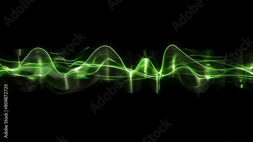 abstract green wave lines on black background, computer generated abstract background, Generative AI illustrations.