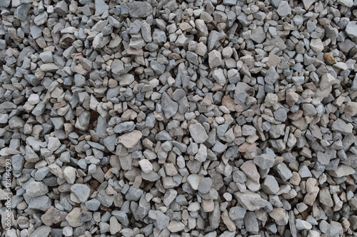 Abstract grey and beige gravel stone background, crushed gray stones and granite pieces texture, large detailed horizontal textured rough construction rock material mix pattern
