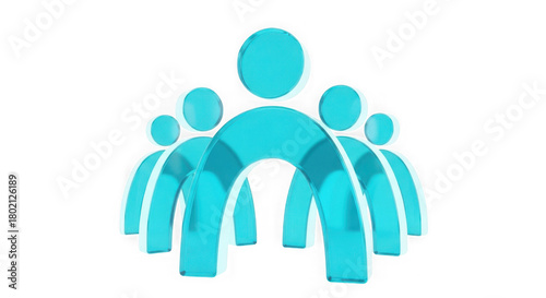 Abstract group of five cyan figures forming an arch, symbolizing unity, teamwork, and community, isolated on transparent background