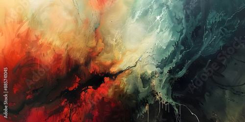 abstract grunge background of red green and yellow colors with smudges and bursts of paint