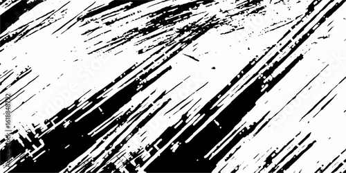 Abstract grunge black and white distressed texture, Vector black ink brush strokes background