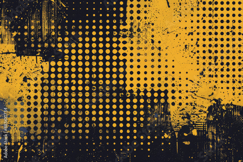 Abstract grunge grid polka dot halftone background pattern. Spotted yellow line. Textures.