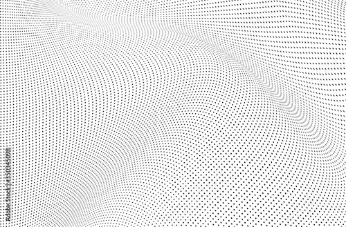 Abstract halftone background. Monochrome grunge pattern of dots. The waves are smooth and chaotic. Pop art texture for business cards, posters, labels, business cards