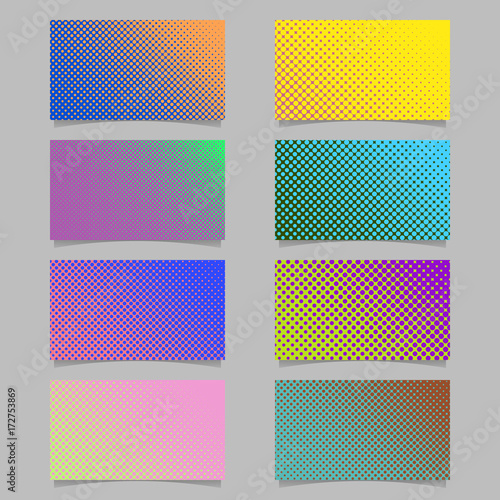 Abstract halftone dot pattern business card background template design set - vector company stationery graphics with colored circles