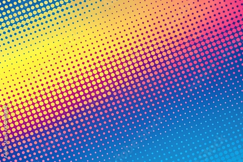 Abstract Halftone Pattern Gradient with Yellow, Pink, and Blue Dots for Minimalist Photography